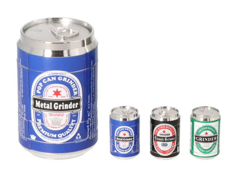 Grinder "Getränkedosen", 4-tlg.; Ø 4cm. 3-fach sortiert, einzeln